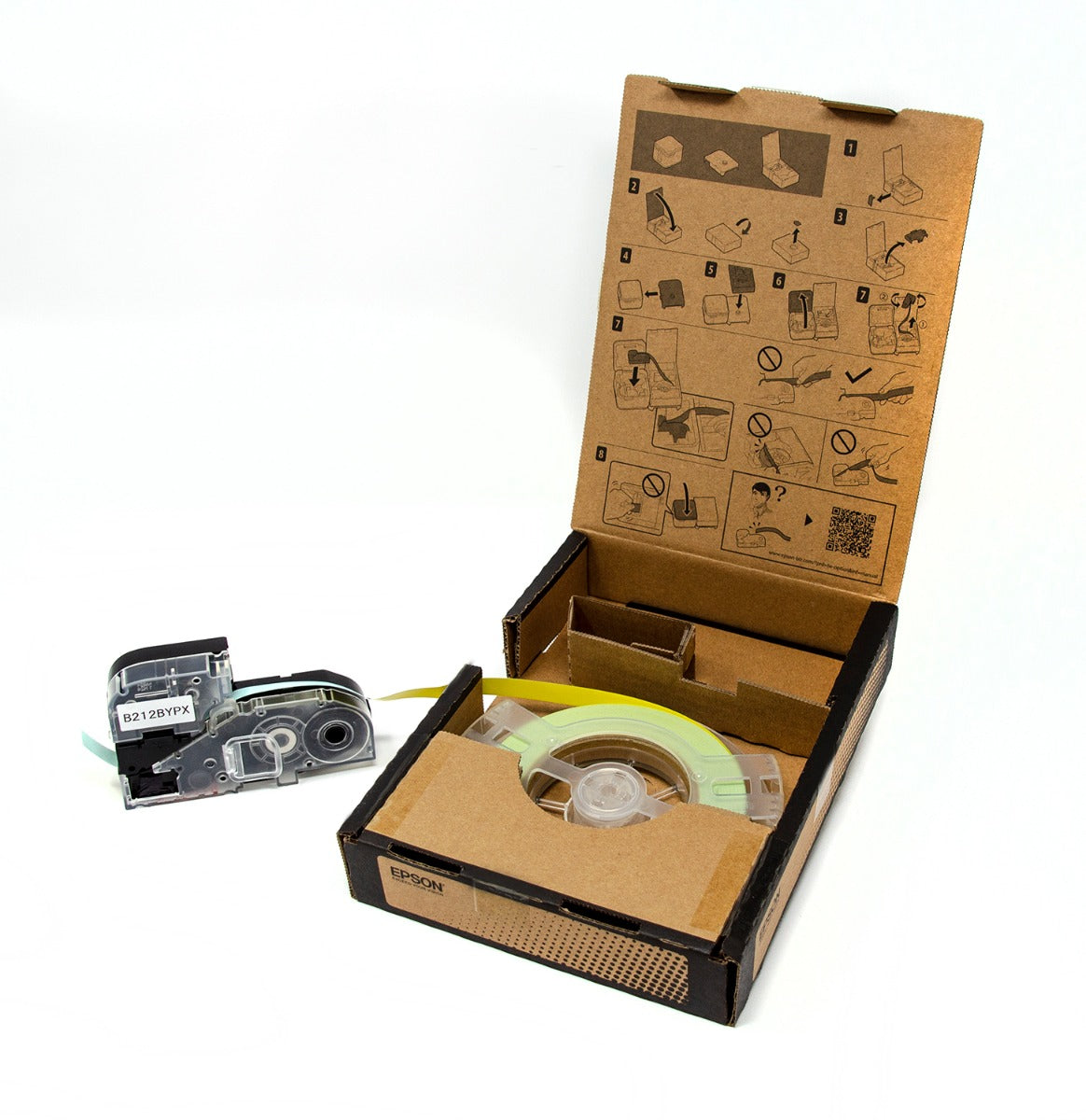 Epson LW-Z Series Bulk Roll - Standard Continuous 1/2" (12mm) x 147.6 ft Black on Yellow Tape - B212BYPX