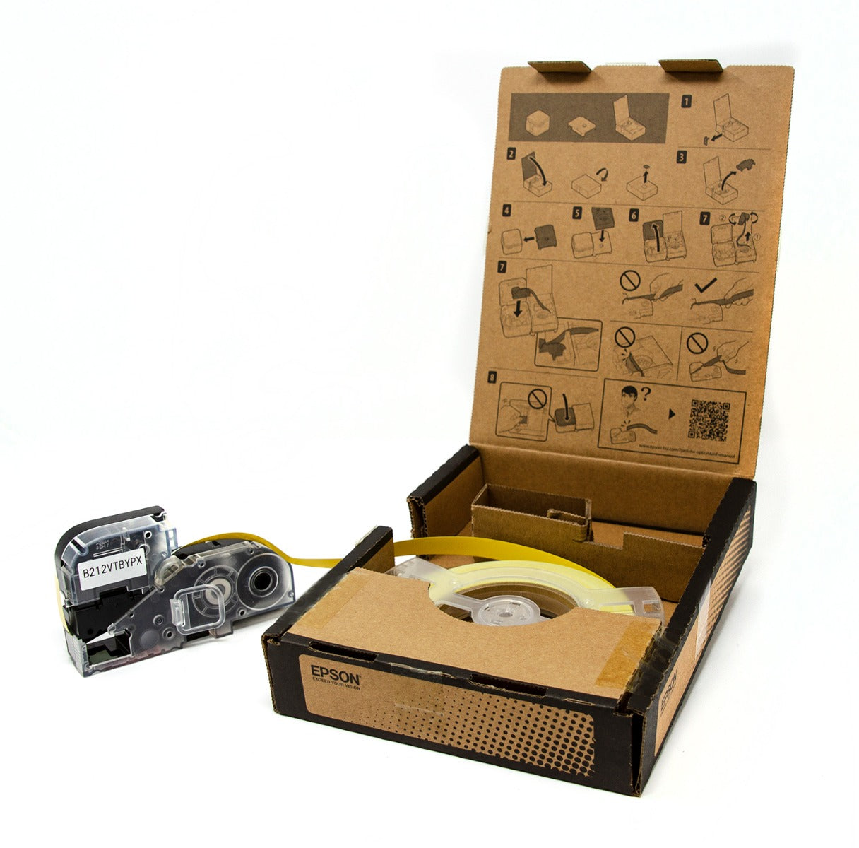 Epson LW-Z Series Bulk Roll - Vinyl Continuous 1/2" (12mm) x 147.6 ft Black on Yellow Tape - B212VTBYPX