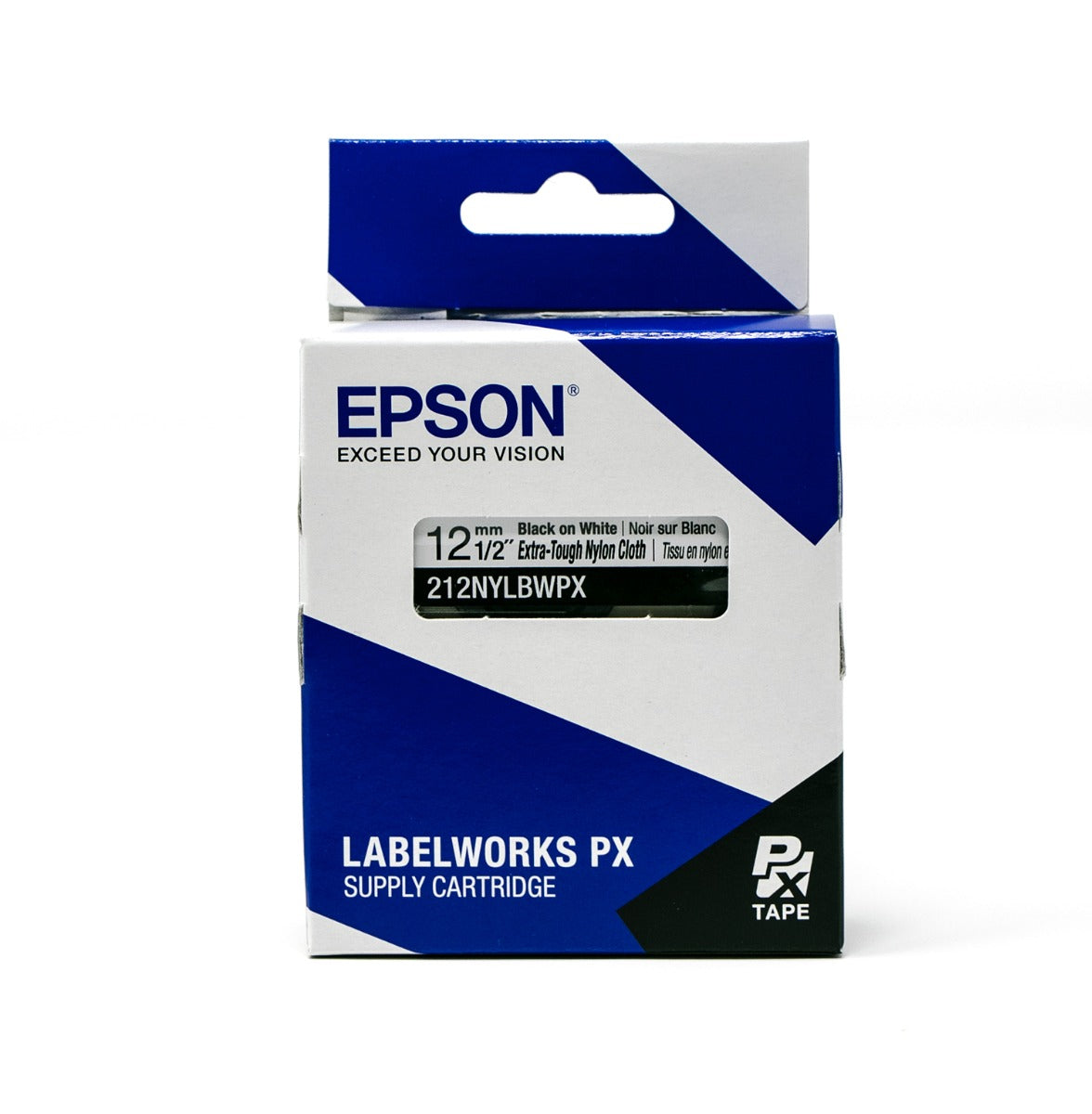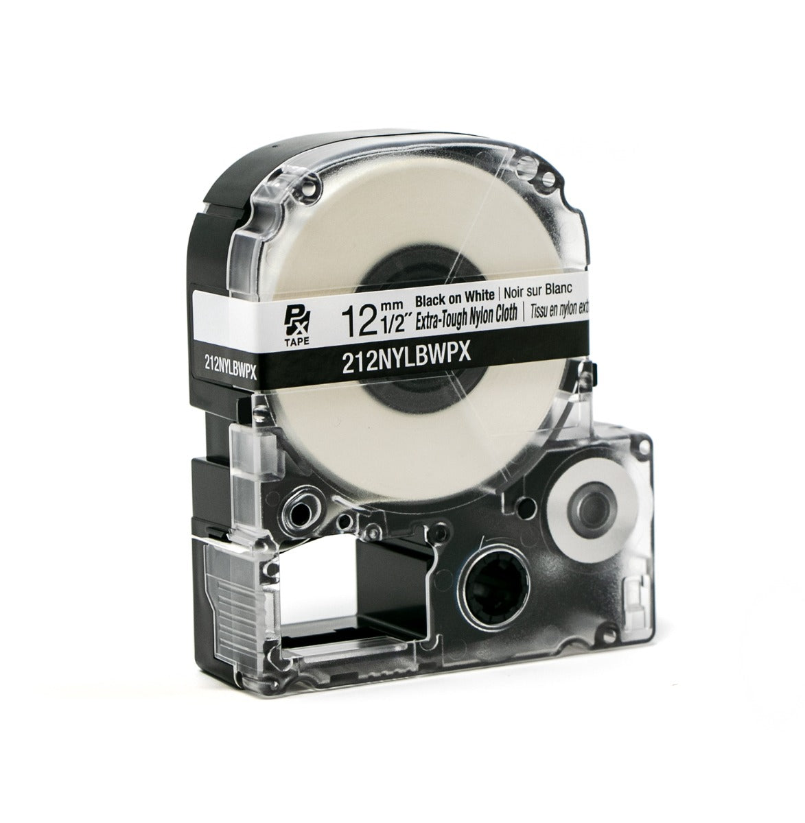 Epson LabelWorks PX Extra-Tough Nylon Cloth 1/2" x 19' Black on White Tape - 212NYLBWPX