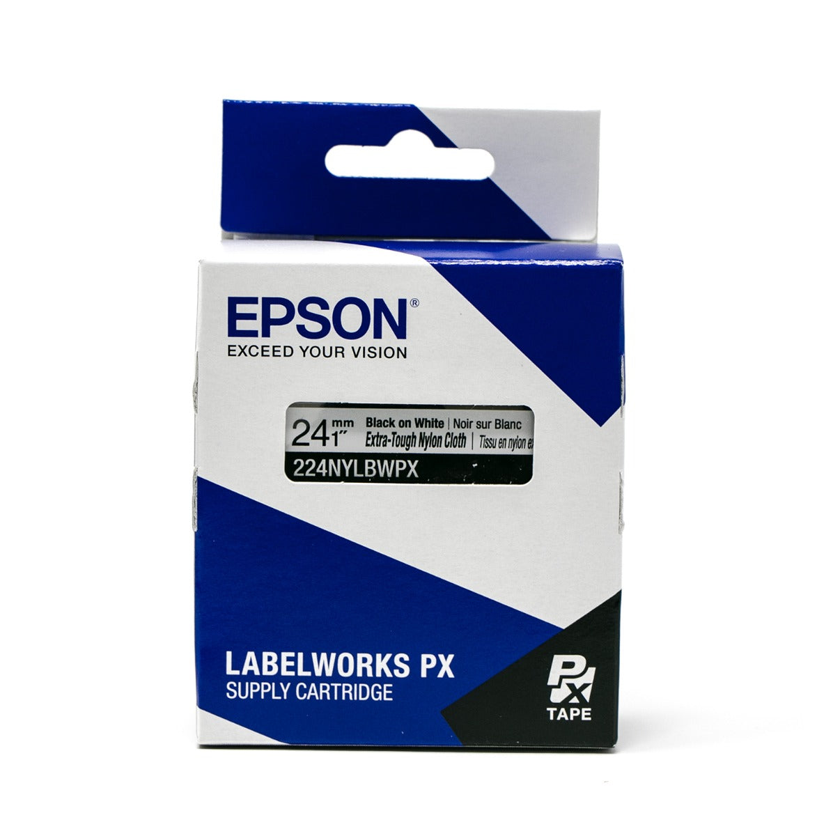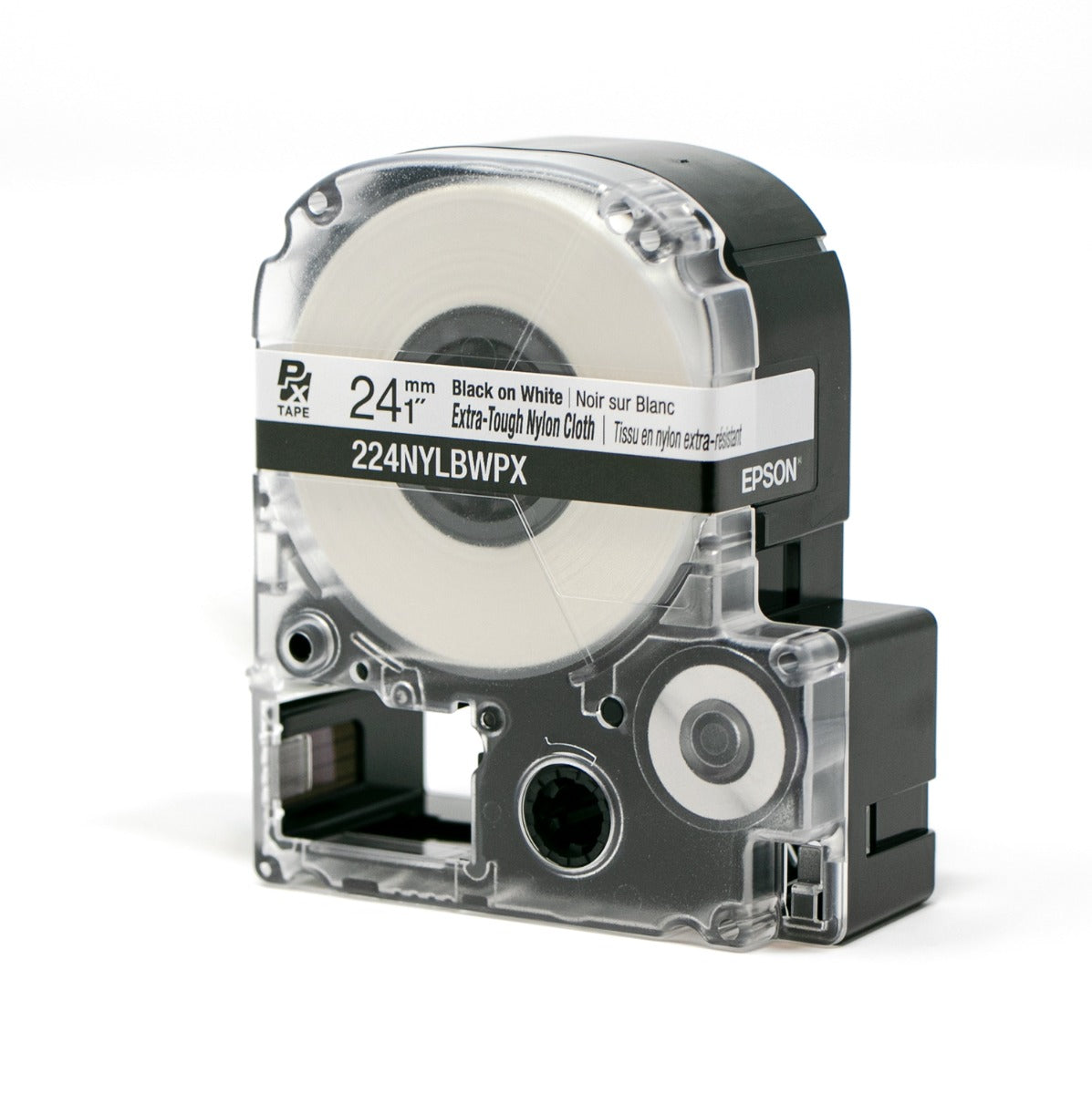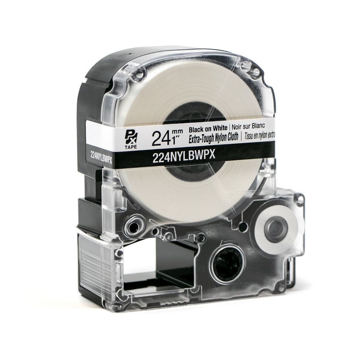 Epson LabelWorks PX Extra-Tough Nylon Cloth 1" x 19’ Black on White Tape - 224NYLBWPX