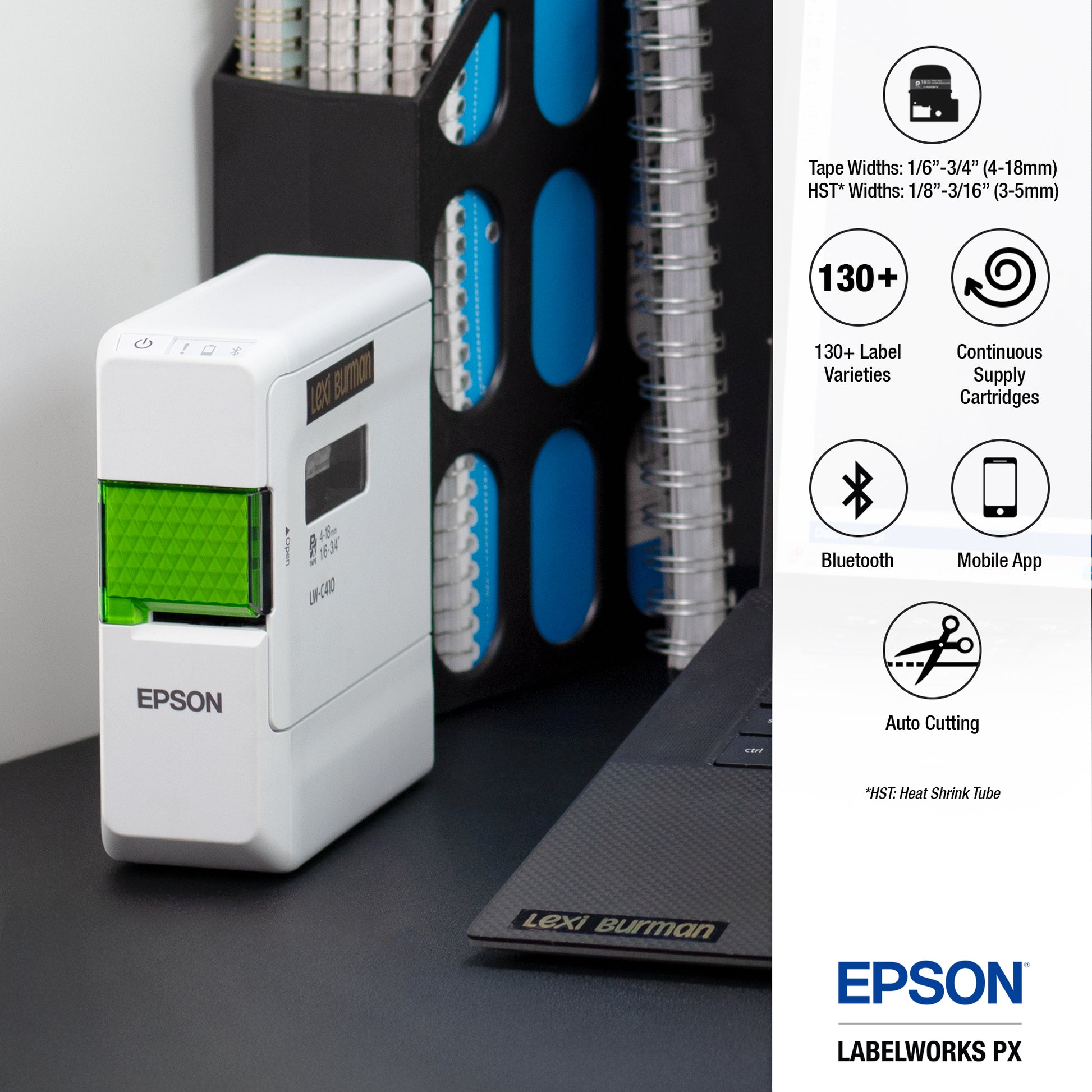 • Compatible with Epson LabelWorks Designer Series home & hobby label supplies of up to 3/4"