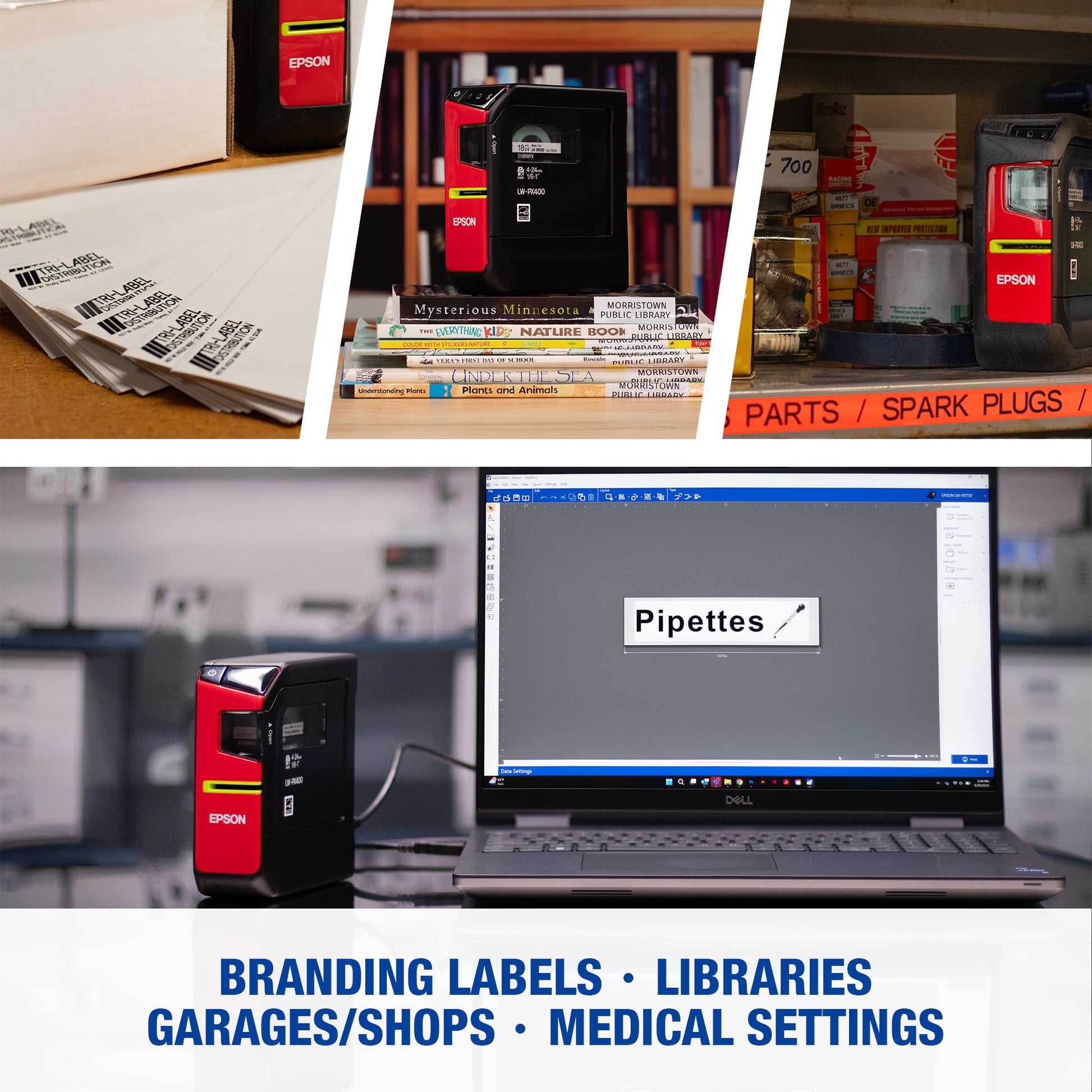 Epson LW-PX400 Printer, 1/2" Black on White Tape Cartridge, Drop-Guard Cover, AC Adapter, USB Cable, Label Editor Software, Owner's Manual