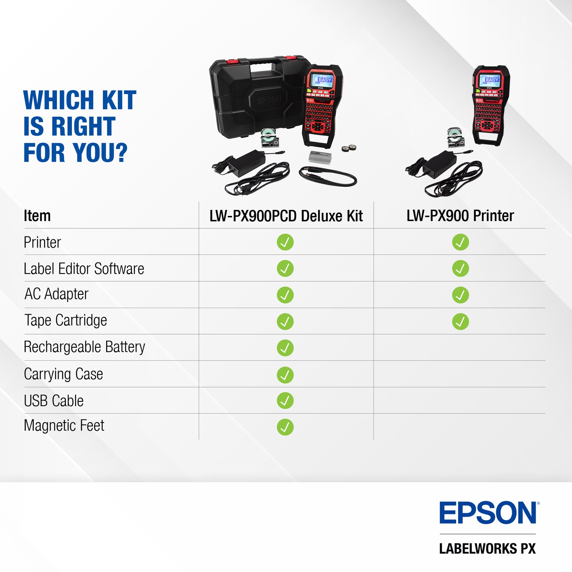 The Epson LabelWorks LW-PX900 is faster, better, easier, and wider. From the front office to the warehouse and the mobile office to on-site installs, the LW-PX900 is the tool you need to get the job done fast.Â