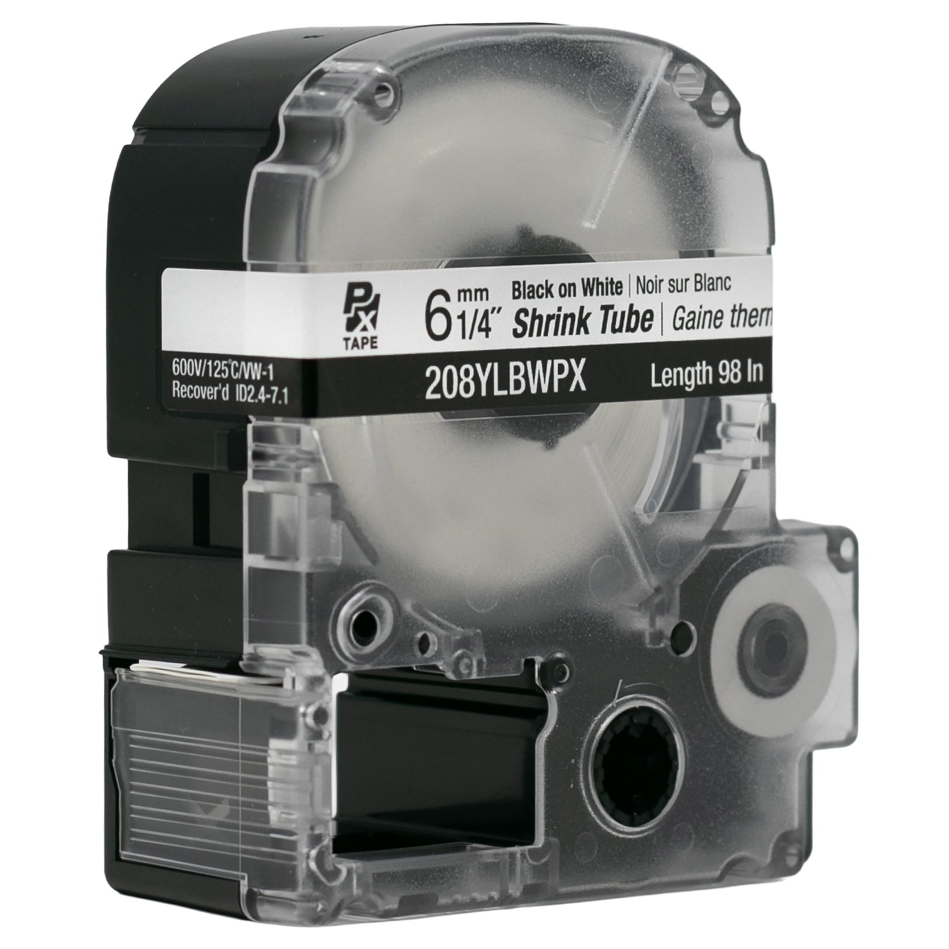 Epson LABELWORKS PX Shrink Tube 1/4" (AWG 6-18) x 98" Black on White Tape - 208YLBWPX