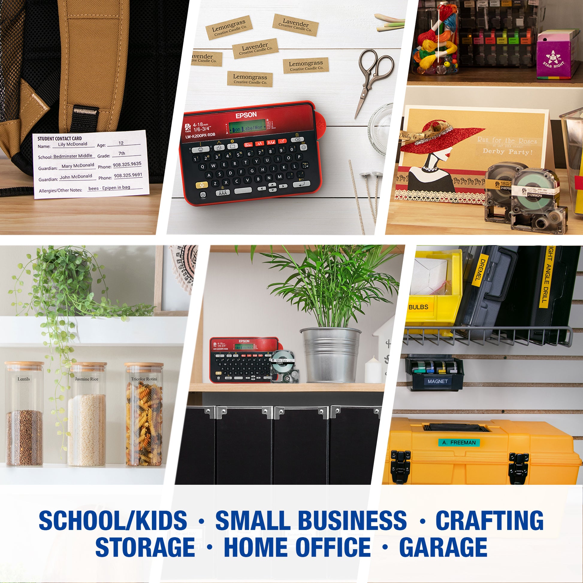 Epson LabelWorks LW-K200PX-RDB Home & Hobby Printer, 1/2" Black on White Tape Cartridge
