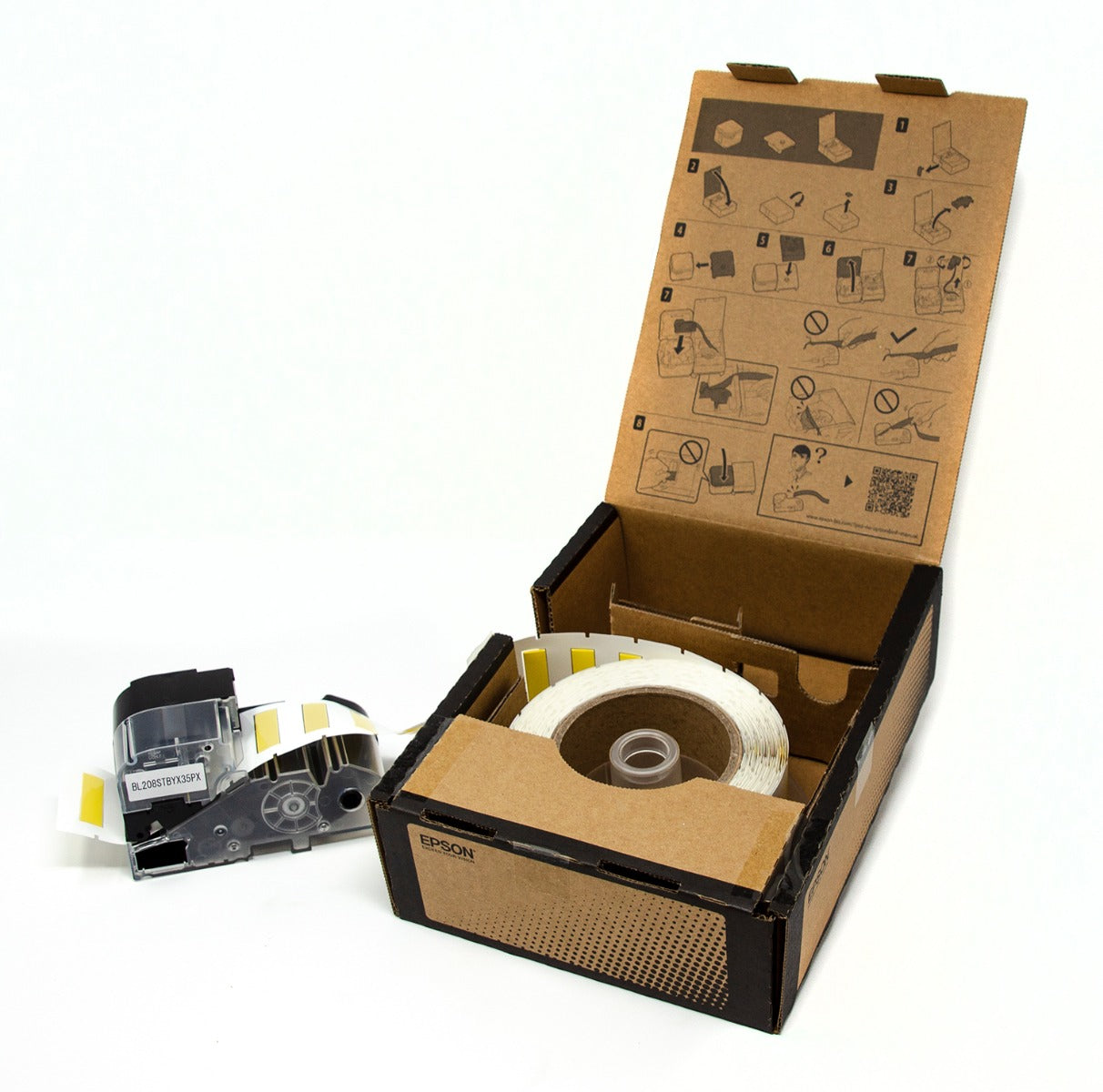 Epson LW-Z Series Bulk Roll - Bulk Ladder Shrink Tube - 1/4" (AWG 6-18) x 1.38" L/ea. Black on Yellow Tape - BL208STBYX35PX