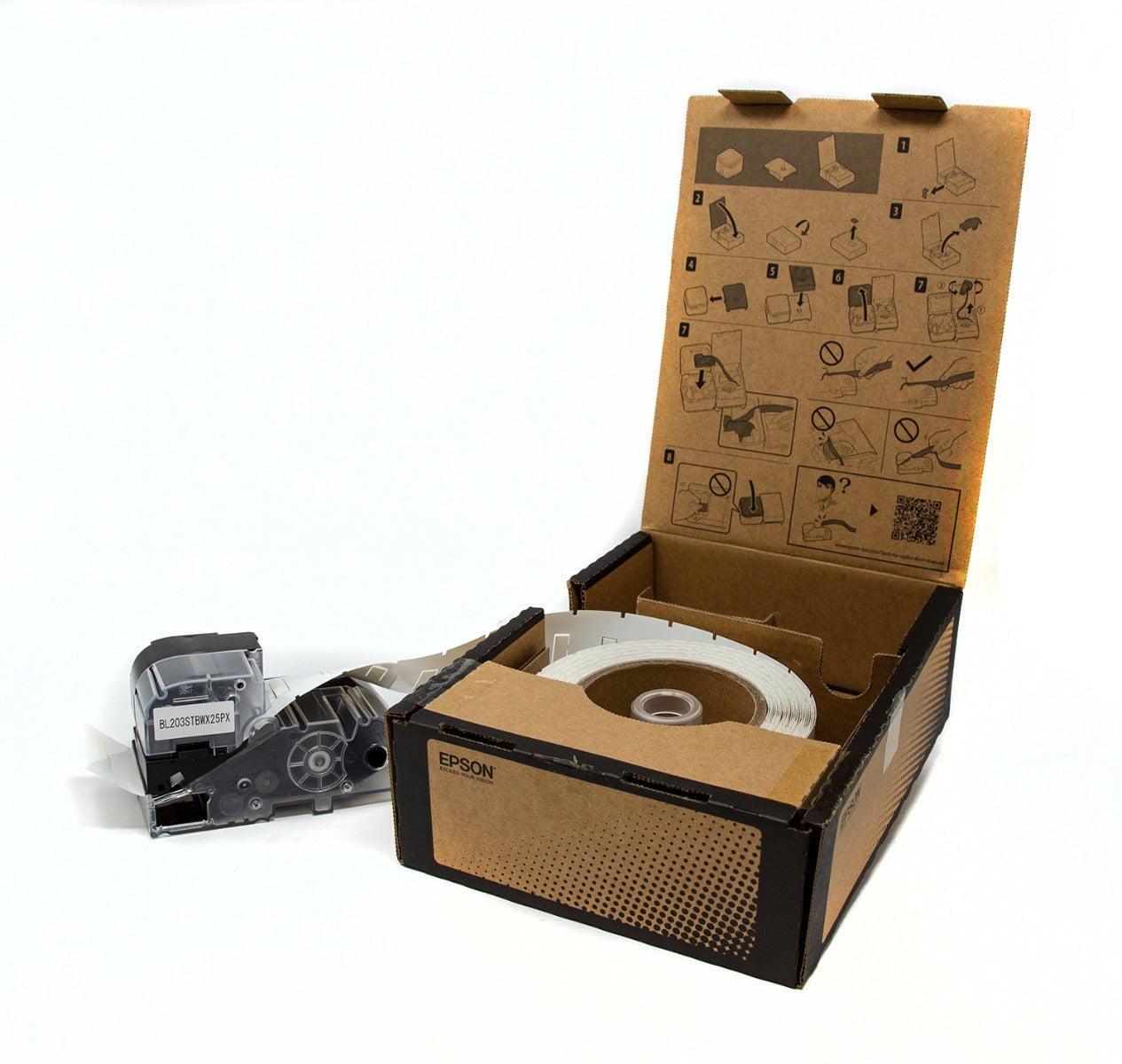 Epson LW-Z Series Bulk Roll - Bulk Ladder Shrink Tube - 1/8" (AWG 14-22) x 0.98" L/ea. Black on White Tape - BL203STBWX25PX